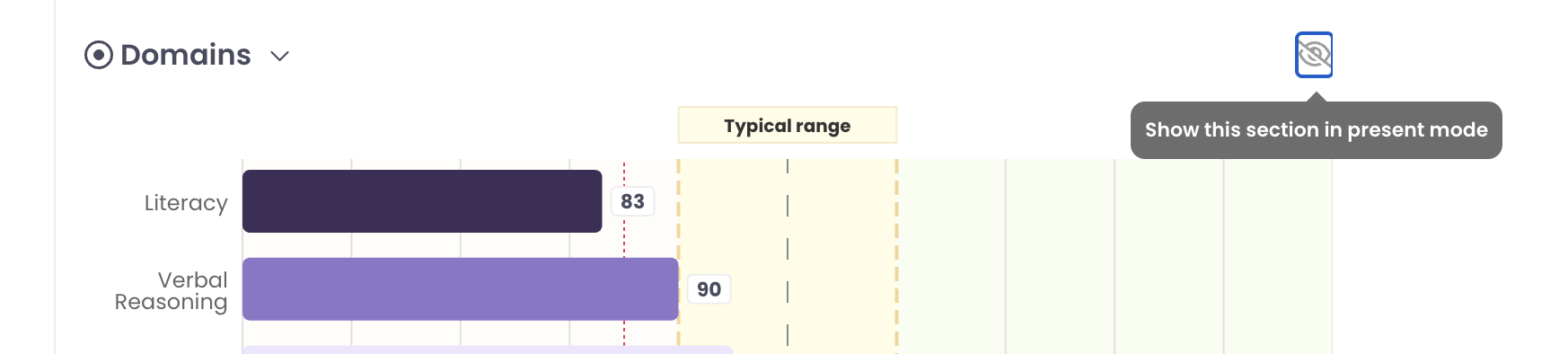 - Ahead of entering Presentation Mode, tutors can choose which sections to share with the learner. To hide a section, simply toggle the eye icon to the right of each section heading.